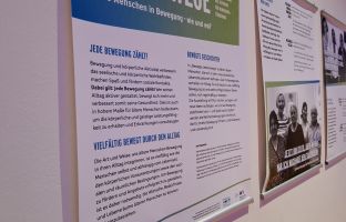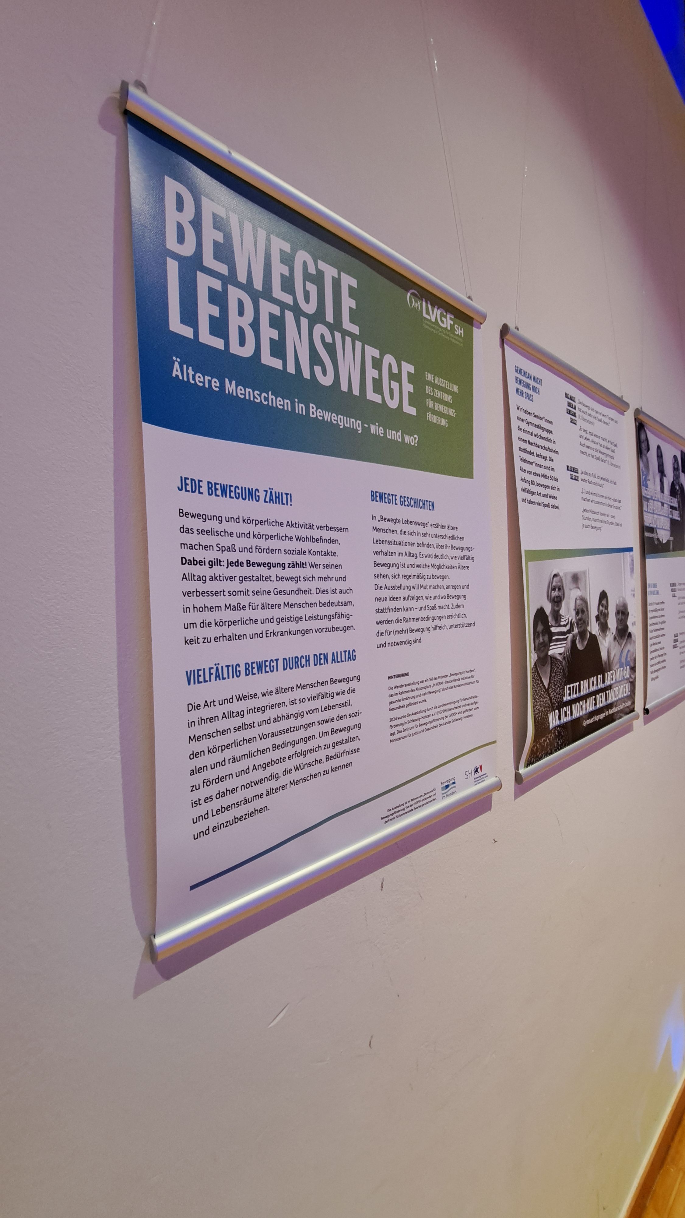 Wanderausstellung „Bewegte Lebenswege“ - Ältere Menschen in sehr unterschiedlichen Lebenssituationen geben einen Einblick in ihr Bewegungsverhalten im Alltag. Ein Projekt der Landesvereinigung für Gesundheitsförderung in Schleswig-Holstein e.V. während der Veranstaltung im Rathaussaal zu sehen.