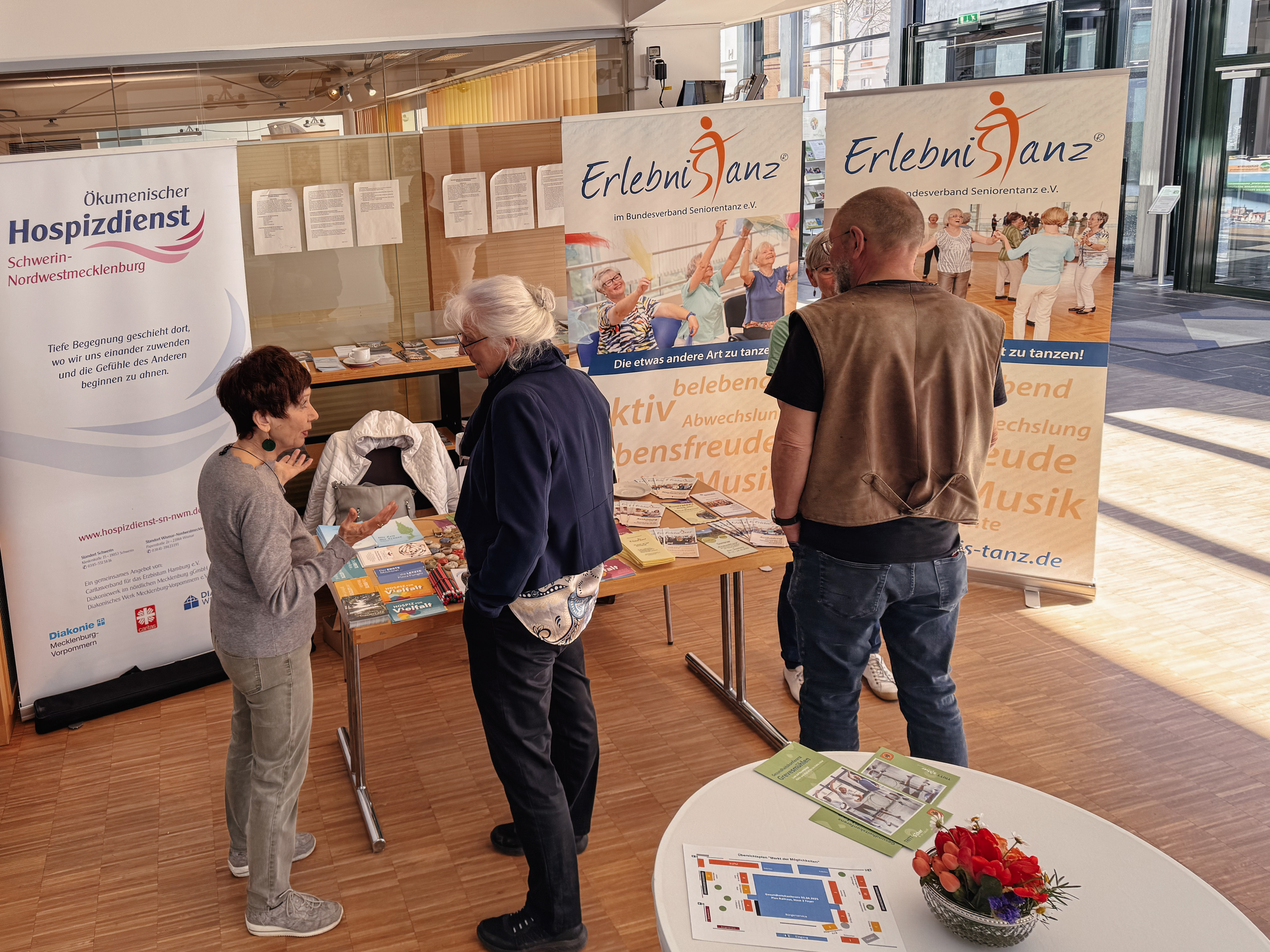 Markt der Möglichkeiten - Freuen Sie sich auf Themenstände verschiedener Einrichtungen, Vereine und Ansprechpartner. Probieren Sie z.B. die Trittsicher-Pedalos aus und lernen Sie ellio kennen- ein innovativer Inaktivitätsmelder für Senioren oder Alleinlebende.