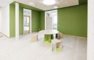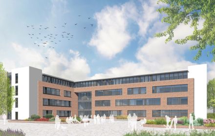 "Nach einer intensiven Grundlagen- und Bedarfsermittlung wurde ein Raumprogramm erstellt, bei dem einzelne Nutzungs- und Freiflächen von allen Schülern gleichermaßen genutzt werden können, um so Ressourcen zu sparen und ein nachhaltiges Schulkonzept für die Stadt zu entwickeln. Vor allem Nutzungsbereiche, die nicht ständig belegt oder von einer Schule allein ausgeschöpft werden können, werden im Gesamtkonzept zentralisiert. Hierzu gehören neben einigen besonders ausgestatteten Fachräumen für Theater, Musik, Sport und Kunst auch Therapie- und Rückzugsräume. Gemeinschaftsbereiche wie die Aula/ Mensa und die Bibliothek werden zusammen mit den gemeinschaftlich nutzbaren Fachräumen in einem Zentralgebäude (2.BA) realisiert. Sämtliche Flächen in den Freianlagen (Schulgarten. Spiel- und Sportbereiche, Grünflächen) können schulübergreifend genutzt werden und sind für alle Schüler barrierefrei zugänglich. Der Städtebau und die Architektur unterstützen damit das schulübergreifende pädagogische Gesamtkonzept des Inklusiven Schulcampus Grevesmühlen." Schneekloth Architekten